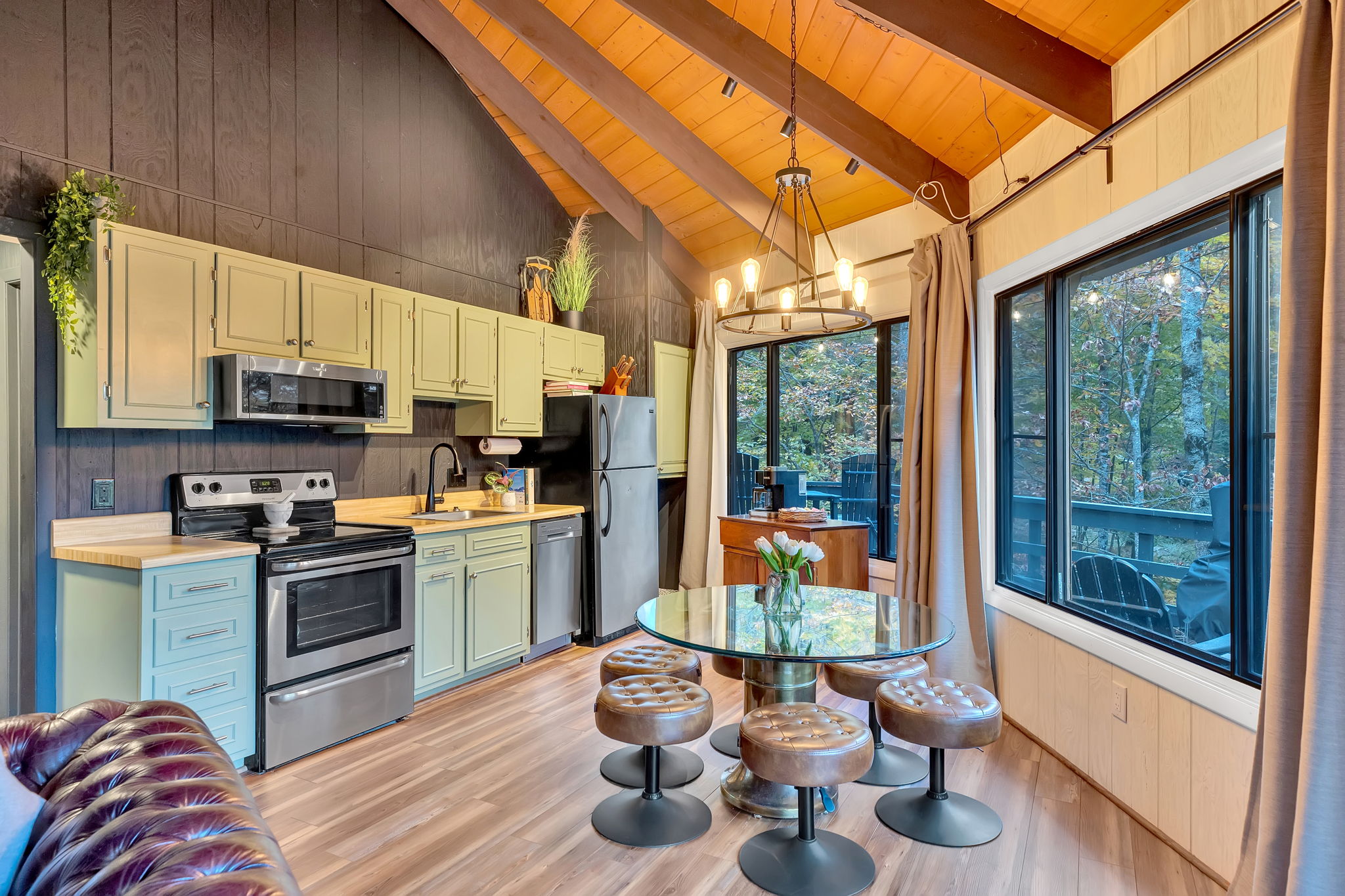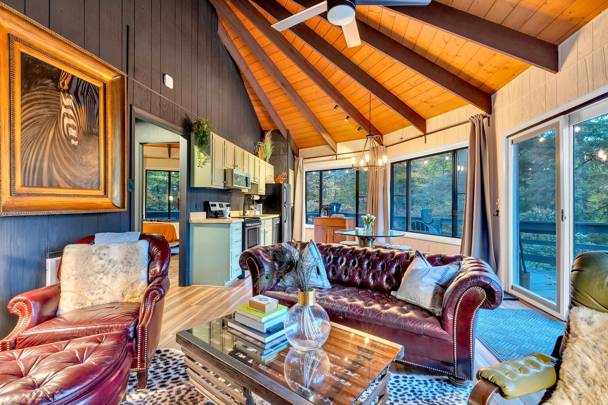 The slopes are just steps from the door, close enough to feel the pull of the mountain the moment you wake up, private enough that the rest of the world never quite finds you here. Fire in every corner of this retreat waiting for the two of you to bring it to life, inside, on the deck, or in the yard under a mountain canopy. And beneath it all, the quiet sound of a mountain stream, soft and constant, the kind of backdrop that makes everything feel more intimate.